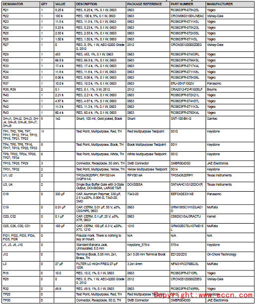 TI公司的TPS543620是高效率4V-18V輸入6A同步SWIFT降壓轉(zhuǎn)換器,具有內(nèi)部補(bǔ)償?shù)墓潭l率先進(jìn)電流模式控制,開關(guān)頻率高達(dá)2.2MHz.器件是小型2.5-mm x 3-mm HotRod VQFN封裝,和高效率和高昂頻率一起,使它最適合用在小型解決方案的地方.固定頻率控制器工作從500 kHz 到 2.2 MHz,采用SYNC引腳能和外時(shí)鐘同步.其它特性還包括高精度基準(zhǔn)電壓,可選擇軟起動(dòng)時(shí)間,單調(diào)起動(dòng)進(jìn)入預(yù)偏壓輸出,可選擇電流限制,通過(guò)EN引腳可調(diào)UVLO和全套的故障保護(hù).器件集成了25-mΩ和6.5-mΩ MOSFET,輸入電壓范圍4V到18V,輸出電壓0.5V到5.5V,三種可選擇PWM斜率,以優(yōu)化控制回路性能,五種可選擇的開關(guān)頻率:500 kHz,750 kHz, 1 MHz, 1.5 MHz和2.2 MHz.整個(gè)溫度范圍內(nèi)的確基準(zhǔn)電壓精度為0.5-V, ±0.5%.可選擇的軟起動(dòng)時(shí)間為0.5 ms, 1 ms, 2 ms和4 ms.可選擇限流以支持6A和3A工作,提供輸出過(guò)壓保護(hù),輸出欠壓保護(hù),輸入欠壓保護(hù),過(guò)流保護(hù)和超溫保護(hù).引腳和TPS543820和TPS543320兼容,結(jié)工作溫度–40C到150C,采用2.5-mm × 3-mm 14引腳VQFN-HR封裝,0.5-mm間距.本文介紹了TPS543620主要特性,功能框圖和五種應(yīng)用電路圖,以及SWIFT™降壓轉(zhuǎn)換器評(píng)估模塊TPS543620EVM主要特性,電路圖,材料清單和PCB設(shè)計(jì)圖.