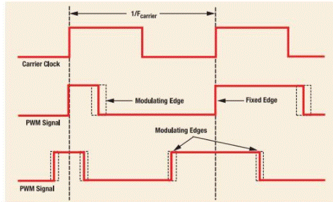 在傳統(tǒng)的PWM中,通過改變信號的兩個邊沿來校正EMI。