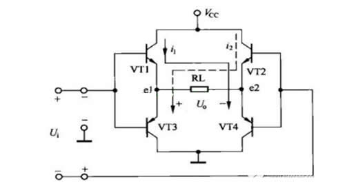 電源電壓VCC加到放大管VT1,VT2的集電極,為他們供電。靜態(tài)時,由于沒有信號輸入,放大管VT1~VT4截止,無電壓輸出,RL上無電流流過。當輸入Ui的正半周信號時,VT1和VT4導通,它們的集電極電流由VCC經(jīng)VT1,RL,VT4到地構(gòu)成回路,形成輸出信號的上半周;當輸入Ui的負半周信號時,VT2,VT3導通,它們的集電極電流由VCC,VT2,RL,VT3到地構(gòu)成回路,形成輸出信號的負半周。這樣,就可以得到一個完整的信號。