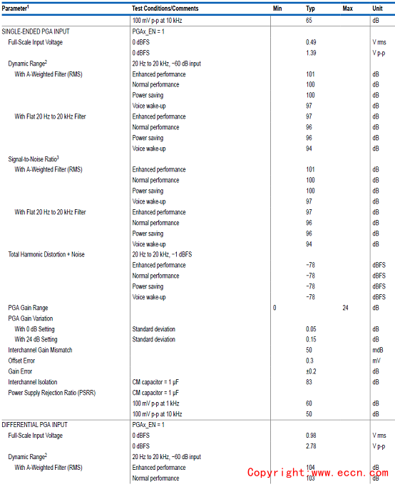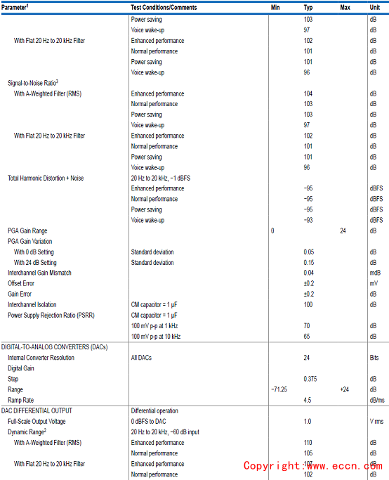 ► 106 dB SNR (signal through ADC with A-weighted filter)