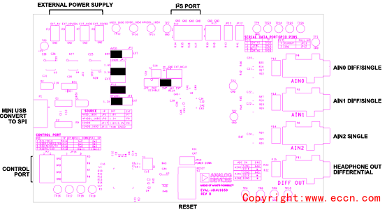 圖3.評(píng)估板EVALADAU1850EBZ框圖
