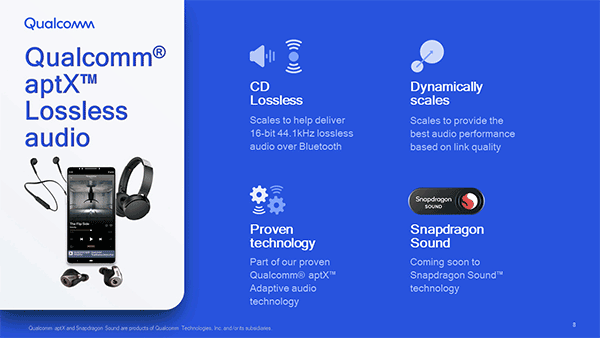高通公司還指出,Snapdragon Sound將第一時間支持aptX Lossless,他們還打算讓旗下所有品牌的產(chǎn)品在未來支持新的編解碼器。當然,這也意味著現(xiàn)有產(chǎn)品線將無法向后兼容。