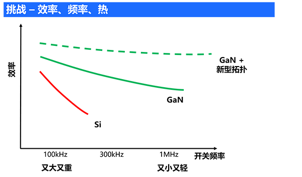 提高效率是小型化的必要途徑,它不但可以減少損耗,同時還能減少散熱,給高頻小型化提供了必要的條件。只有效率提升了,單位體積散熱減少,同時通過高頻化設(shè)計,功率密度才會大大的提升。