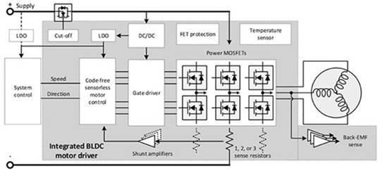 圖 2:典型的無傳感器 BLDC 電機系統(tǒng)