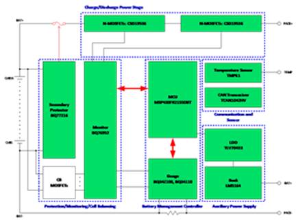電動(dòng)自行車通常為16S及其以下的電池包。以16S電動(dòng)自行車電池包為例,下圖是一個(gè)典型的基于TI產(chǎn)品的BMS解決方案。關(guān)鍵器件采用了TI的最新產(chǎn)品,具有更低成本的同時(shí)具備更高的性能,幫助大家實(shí)現(xiàn)更優(yōu)的BMS設(shè)計(jì)。