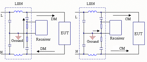 傳導(dǎo)干擾主要評(píng)估輸入和輸出線上流過(guò)的干擾噪聲。待測(cè)試的設(shè)備EUT通過(guò)阻抗匹配網(wǎng)絡(luò)LISN 連接到干凈的交流電源上。