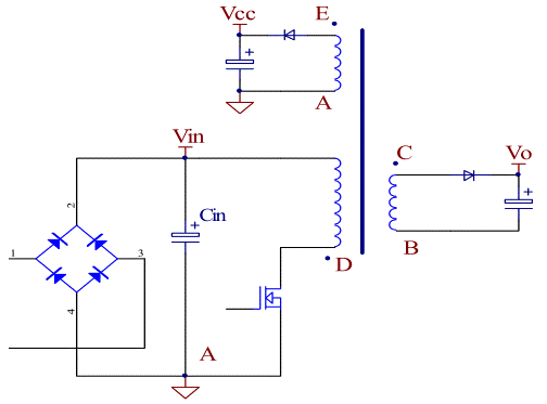 輔助繞組和次級(jí)繞組的整流二極管放置在下端,從而改變電壓變化的方向,同時(shí)注意冷點(diǎn)要盡量的靠近,這樣因?yàn)閮烧唛g沒(méi)有電壓的變化,所以不會(huì)產(chǎn)生共模電流。