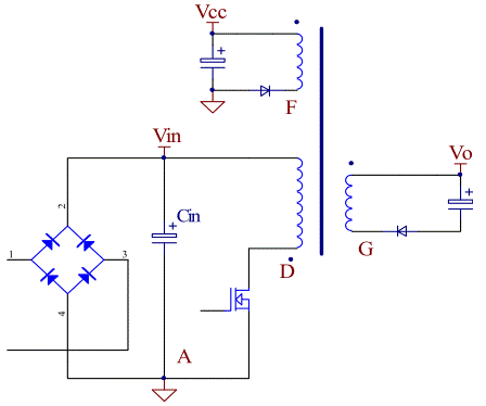 強(qiáng)調(diào):電壓沒(méi)有變化的點(diǎn)稱為靜點(diǎn)或冷點(diǎn),電壓變化的點(diǎn)稱為動(dòng)點(diǎn)或熱點(diǎn)。初級(jí)的地和Vin都是冷點(diǎn),對(duì)于輔助繞組和輸出繞組,冷點(diǎn)可以通過(guò)二極管的位置進(jìn)行調(diào)整。圖18中,A,B和Vin為冷點(diǎn),F(xiàn), D,B和C為熱點(diǎn);而圖5中,A,Vcc,Vin和Vo為冷點(diǎn),D,F(xiàn)和G 為熱點(diǎn)。