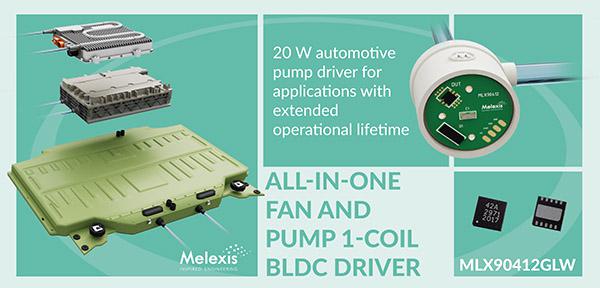 全球微電子工程公司 Melexis 推出集成有驅(qū)動(dòng)級(jí)的單線圈泵/風(fēng)扇芯片 MLX90412GLW,適用于環(huán)境溫度較高的應(yīng)用,例如汽車水泵。MLX90412GLW 可在內(nèi)燃機(jī)(ICE)應(yīng)用中驅(qū)動(dòng)高達(dá) 15W 的泵,最高工作環(huán)境溫度高達(dá) 135℃。在電動(dòng)汽車(EV)85℃ 的最高環(huán)境溫度范圍內(nèi),可驅(qū)動(dòng)高達(dá) 20W 的水泵。