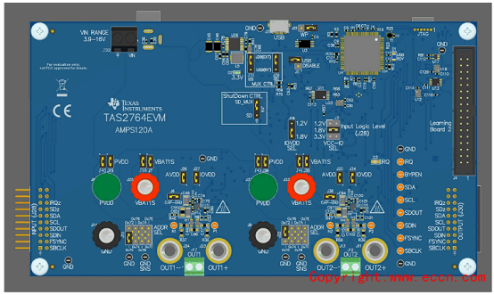 圖4.評估模塊TAS2764EVM外形圖(3D):正面