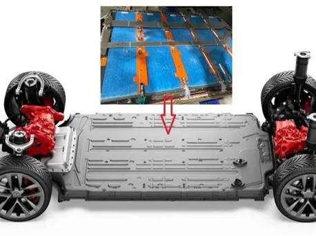 這個(gè)電池系統(tǒng)整體分隔為5個(gè)區(qū)域,從目前的設(shè)計(jì)來看,可能是從大模組過渡到了和系統(tǒng)整體粘接的程度。