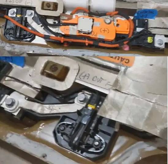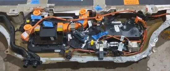 特斯拉巧妙地使用通過兩個(gè)巨大的長(zhǎng)busbar將這兩個(gè)BDU連接起來。