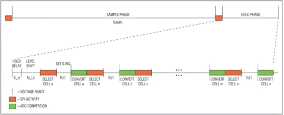 MAX14920/MAX14921的SPI控制,以任意順序選擇任何電池電壓讀數(shù)。(圖源:Maxim Integrated)