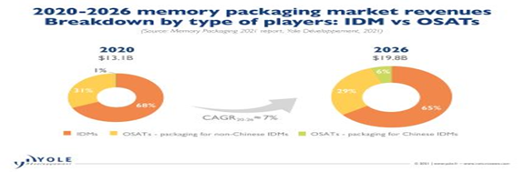 ▲ 2020-2026 年存儲封裝市場收入分類:IDM vs OSAT