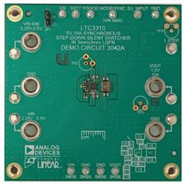 控制器的一個替代方案是單芯片解決方案,其中FET在轉(zhuǎn)換器IC內(nèi)部。例如,LTC3310S單片降壓調(diào)節(jié)器(IC尺寸為3 mm×3 mm)可實現(xiàn)負(fù)載點解決方案,單個IC最多可提供10 A電流,并聯(lián)多個IC可提供20 A電流。這些IC分別如圖6和圖12所示。