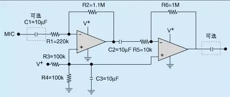 圖2MIC前置放大器電路圖