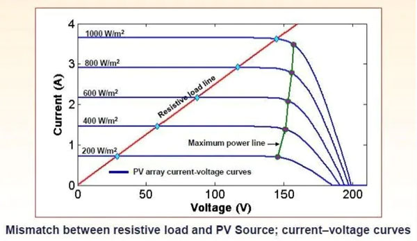 大多數(shù)傳統(tǒng)能源(電源)作為具有固定參數(shù)(如內(nèi)阻)的電流或電壓源表現(xiàn)相對較好,而太陽能電池則具有不尋常的特性,需了解這些特性,以便盡可能多地捕捉其輸出。設(shè)計(jì)者的目標(biāo)是從太陽能電池獲得最大功率,而不管輸出電壓和電流,因?yàn)檫@兩個(gè)量都會(huì)隨著工作條件的變化而變化。