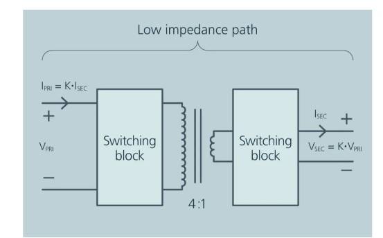 圖 4:BCM 母線轉換器的功能框圖。雖然 BCM 可進行 DC-DC 轉換,但它還可使用變壓器進行高效的 AC-AC 轉換,不僅可按 K 因數(shù)縮放大小,而且還可使用開關模塊在 AC 與 DC 之間進行轉換。開關在高頻率下完成,而且由于具有和變壓器一樣的能量傳輸特性,因此轉換不僅能對瞬態(tài)負載變化做出快速響應,而且還可在輸入和輸出之間提供一個低阻抗路徑。
