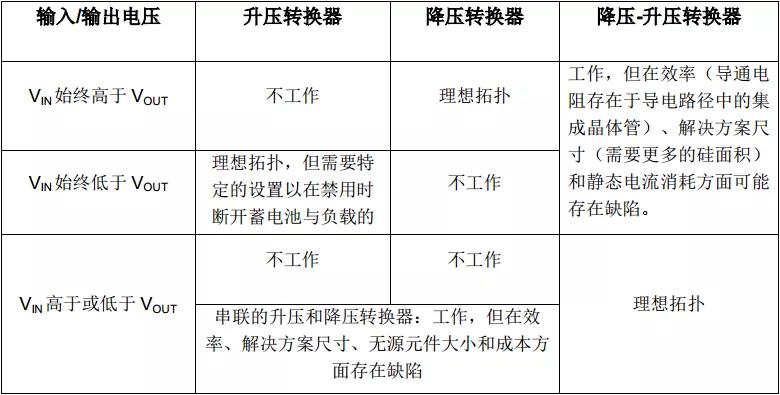 降壓-升壓可以在關(guān)機期間斷開負載與電源的連接,而其他拓撲可能需要額外的負載開關(guān)。