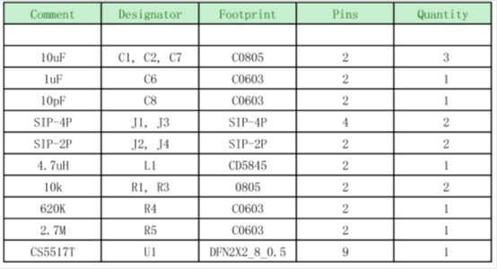 (6). CS5517T DEMO板物料清單