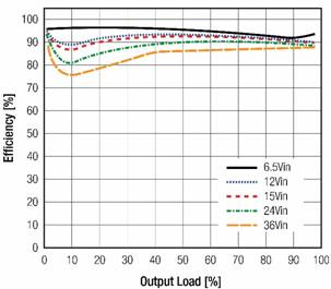 高效的RPX-4.0全功率工作溫度最高可達65°C,并根據(jù)型號和安裝配置的不同,功率減少時可高達 90°C。低輸出功率時效率曲線上升,也就是說轉(zhuǎn)換器適合用在中低輸出功率。這主要是通過智能控制開關(guān)頻率和一個屏蔽的集成存儲扼流圈來實現(xiàn),同時確保低 EMI。該設(shè)計遵循 RECOM 的3D Power Packaging® 高功率密度技術(shù),在引線框結(jié)構(gòu)上使用倒裝芯片。RECOM提供 3 年質(zhì)量保證,也提供RPX-4.0-EVM-1評估板,客戶可以測試所有產(chǎn)品功能并優(yōu)化濾波以滿足目標系統(tǒng)的要求。
