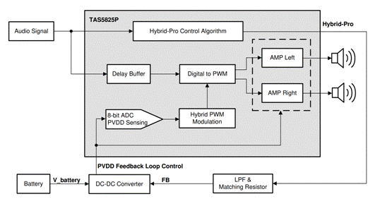 為了在不影響輸出功率的情況下提高效率,TI推出了在DSP中采用Hybrid-Pro算法的TAS5825P