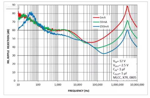 在現(xiàn)實(shí)世界中,必須綜合考量所有這些影響及其作用,以實(shí)現(xiàn)輸出電壓的穩(wěn)定和精確。因此,有必要仔細(xì)考量上述的情況可能關(guān)乎一個(gè)特定應(yīng)用。例如對(duì)于需要最佳圖像質(zhì)量的攝像機(jī)應(yīng)用,LDO 對(duì)負(fù)載電流變化的動(dòng)態(tài)響應(yīng)就是最為重要的。當(dāng)噪聲值低于100 uVrms 且 PSRR 值為常規(guī)水平(高于50 dB)時(shí),對(duì)圖像質(zhì)量的影響就微不足道。