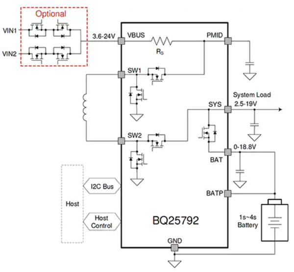 圖 2:BQ25792 全集成降壓升壓充電器簡化了完整的 USB PD 充電解決方案的設(shè)計(jì)。(圖片來源:Texas Instruments)