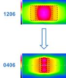 圖 7 – 高性能寬端子薄膜電阻熱力圖對(duì)比,所需空間是常規(guī)端子的三分之一;圖片來(lái)源:Vishay