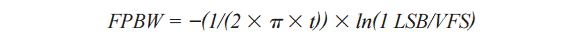 一般而言,一個(gè)ADC的內(nèi)部前端需要在半個(gè)周期或采樣時(shí)鐘周期內(nèi)建立(0.5/Fs),這樣才能提供對(duì)內(nèi)模擬信號(hào)捕捉的精確表達(dá)。因此,對(duì)于一個(gè)12位ADC(采樣速率為2.5 GSPS,滿量程輸入范圍為1.3 V p-p)來說,全功率帶寬(FPBW)可通過下列瞬態(tài)公式推導(dǎo):