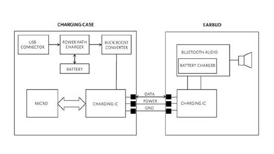 傳統(tǒng)的TWS充電過程中,需要使用3個或更多的引腳,其中兩個引腳用于充電,其他引腳用來在充電盒和耳機之間建立通信(或數(shù)據(jù))通道,一方面跟蹤耳機電池的充電狀態(tài)以便對充電過程進行調控,另一方面實現(xiàn)設備固件升級和/或用于工廠調試,在一些方案中還使用專用的(pogo)引腳檢測耳機是否被放入充電盒。但更多的引腳,也就意味著電路布線的復雜性會增加,而且會在可靠性上引入額外的風險。