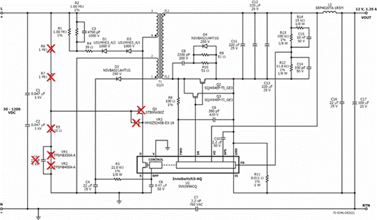 InnoSwitch3-AQ具有30V啟動(dòng)電壓,這對(duì)于為汽車(chē)應(yīng)用中的安全系統(tǒng)上電至關(guān)重要。分立解決方案需要在初級(jí)側(cè)添加額外的元件,才能實(shí)現(xiàn)30V啟動(dòng),這需要付出相當(dāng)高的成本。連接到高壓母線的每個(gè)元件都必須針對(duì)多種故障模式進(jìn)行測(cè)試,因此PI器件的高集成度優(yōu)勢(shì)可以節(jié)省系統(tǒng)成本,最多可減少50%的測(cè)試用例。