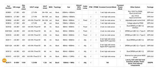 南芯已推出包括SC8102、SC8112、SC8701、SC8001/2等多款DC/DC電源管理芯片,完美適用于車規(guī)、多口墻充、適配器、HUB和工業(yè)應(yīng)用等多場(chǎng)景。近期更是隆重推出集成Power