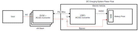 圖2為直流充電樁的典型框圖。考慮到將轉(zhuǎn)換器堆放在車內(nèi)會(huì)使車輛變得笨重,因此,這些堆疊式變流器常被放置在車輛外部,成為電動(dòng)汽車充電樁的組成部分。充電樁通過車載充電器與車輛蓄電池直接連接。直流充電樁是一個(gè)L3充電器,可滿足120至240kW范圍內(nèi)的極高功率。L3充電器通常在30分鐘內(nèi)將電池充電至80%的荷電狀態(tài)(SoC)。為了實(shí)現(xiàn)這種高功率水平,TI使用了可堆疊的模塊化電源轉(zhuǎn)換器。