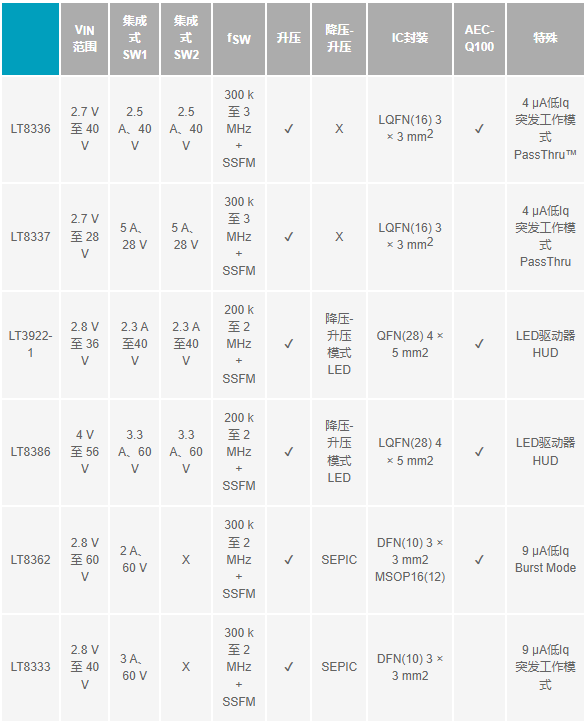 DC-DC轉(zhuǎn)換設(shè)定了黃金標(biāo)準(zhǔn)。在過去5年多的時間里,我們了解到了大量這些低EMI同步降壓和升壓轉(zhuǎn)換器。這些DC-DC轉(zhuǎn)換器簡化了在高功率、噪聲敏感環(huán)境中的系統(tǒng)級EMC設(shè)計,例如冷啟動預(yù)升壓、驅(qū)動大電流LED串和高壓功率放大器聲音系統(tǒng)。與基于控制器的設(shè)計相比,單芯片(集成電源開關(guān))升壓穩(wěn)壓器提供了一種更緊湊的高效解決方案,通常用于5