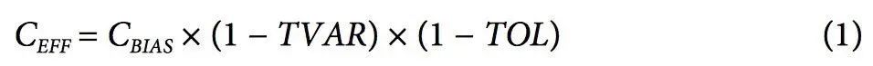 考慮電容隨溫度、元件容差和電壓的變化時,可以利用公式1確定最差情況下的電容。