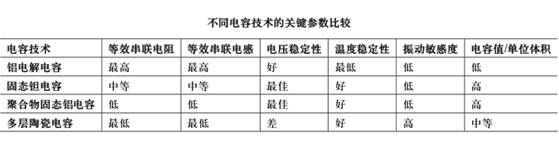 雖然OS-CON型電容的性能比傳統(tǒng)的鋁電解電容明顯改善,但是與陶瓷電容或固態(tài)聚合物鉭電容相比,往往體積更大、ESR更高。與固態(tài)聚合物鉭電容一樣,它們不受壓電效應影響, 適合要求低噪聲的應用場合。