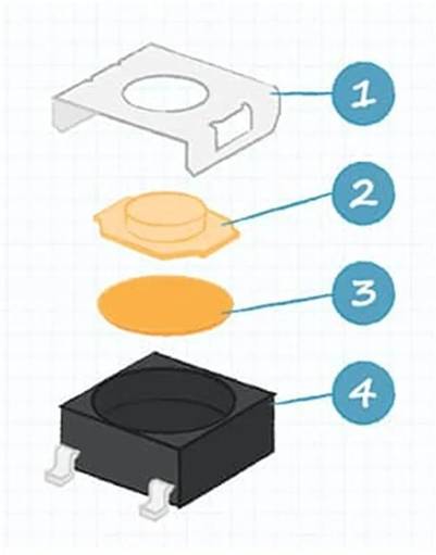 圖2:典型觸摸開關(guān)的結(jié)構(gòu)(圖片來源:CUI Devices)