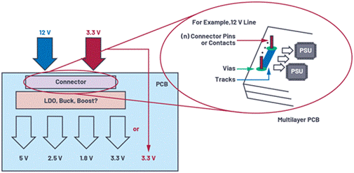 正確的布局和布線可以避免因錯(cuò)誤的走線寬度、錯(cuò)誤的通孔、引腳(連接器)數(shù)量不足、錯(cuò)誤的接觸點(diǎn)大小等導(dǎo)致軌道被燒毀,進(jìn)而引發(fā)電流限制。下面章節(jié)介紹了一些值得注意的地方,也提供幾個(gè)PCB設(shè)計(jì)技巧。