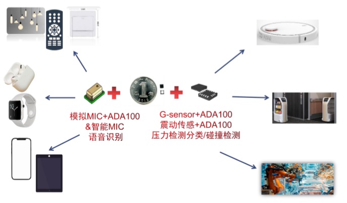 ADA100 是一顆超低功耗運(yùn)行的模數(shù)混合,感存算一體芯片,可用于時(shí)間序列信號(hào)系列傳感 器(如語(yǔ)音識(shí)別,壓力,重力傳感器等)的協(xié)同處理,可廣泛應(yīng)用于可穿戴設(shè)備,手機(jī),IOT 物聯(lián)網(wǎng),智能家居家電設(shè)備等領(lǐng)域,幫助產(chǎn)品實(shí)現(xiàn)智能化,高精確度傳感控制。