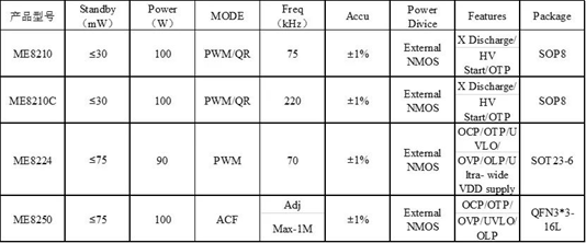 針對手機(jī)、筆記本電腦和平板電腦等設(shè)備充電器產(chǎn)品,上海貝嶺可以提供初級測驅(qū)動主控IC(南京微盟系列產(chǎn)品),產(chǎn)品如下表1所示。