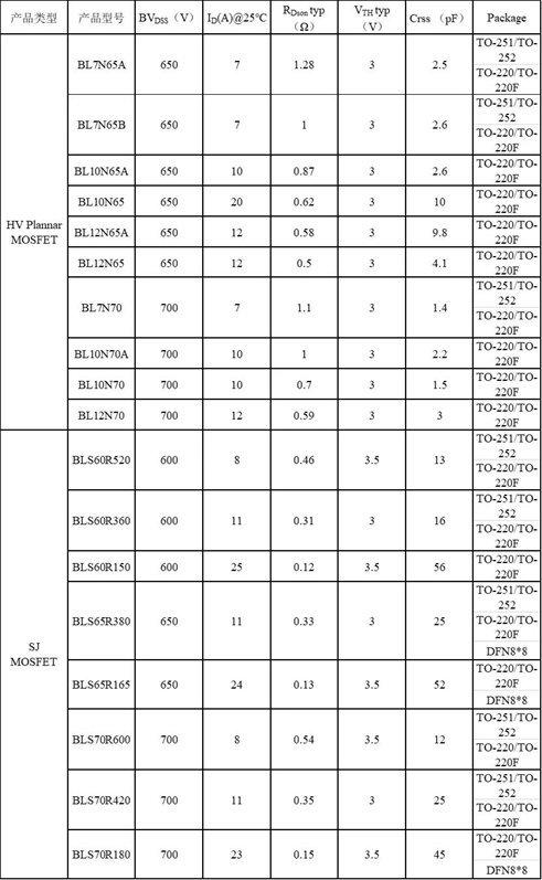 表2 前級高壓MOSFET產(chǎn)品選型表