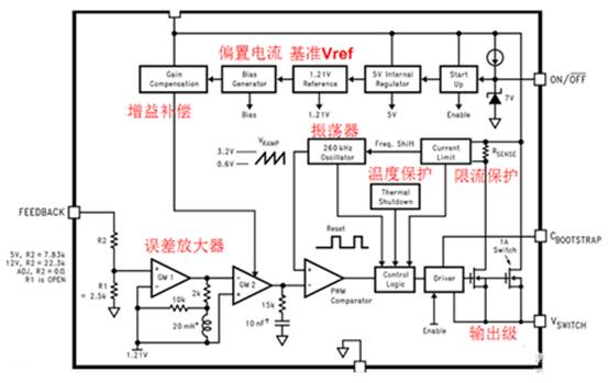 1、誤差放大器:誤差放大器的作用就是將反饋電壓(FB引腳電壓)與基準(zhǔn)電壓的差值進(jìn)行放大,然后再用該信號(hào)去控制PWM輸出信號(hào)的占空比。