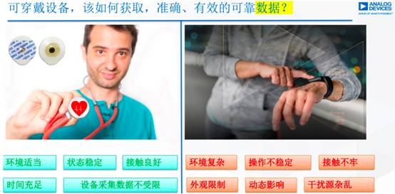 在醫(yī)院里心電儀檢測(cè)的環(huán)境是很理想的,而可穿戴產(chǎn)品領(lǐng)域?qū)﹄娮釉O(shè)備的要求比醫(yī)院還要高。如手表戴得是否牢固,周圍環(huán)境是否有很多電磁干擾等等,這些對(duì)可穿戴設(shè)備都是不利的。自1965年ADI成立以來,一直都在專注于混合信號(hào)處理等技術(shù),在數(shù)據(jù)轉(zhuǎn)換、模擬/數(shù)字信號(hào)處理上都有很深厚的積淀,使得ADI芯片和方案,可以在最大程度上,從系統(tǒng)層面解決這些問題。