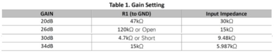 ACM3128A pin5(GAIN)用來設(shè)置增益,接一個電阻到地,不同電阻對應(yīng)不同增益,四個檔位。