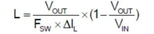 4.電感:不同輸出電壓的要求感量不同;注意溫升和飽和電流要滿足余量要求,一般最大電流的1.2倍以上(或者電感的飽和電流必須大于最大輸出電流+0.5*電感紋波電流)。通常選擇合適的電感值L,使ΔIL占輸出電流的30% to 50%。計算公式: