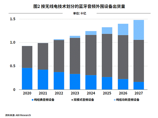 ABI Research預(yù)測,到2027年,低功耗音源和匯流設(shè)備的年出貨量將達到30億。