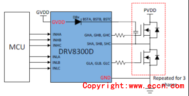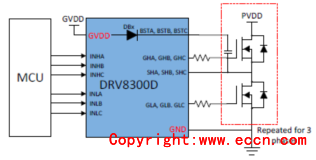 DRV8300 is 100-V three half-bridge gate drivers, capable of driving high-side and low-side N-channel power MOSFETs. The DRV8300D generates the correct gate drive voltages using an integrated bootstrap diode and external capacitor for the highside