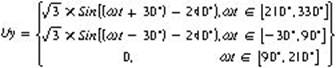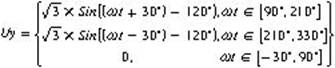 可見(jiàn)采用開(kāi)關(guān)損耗最小正弦PWM時(shí),Ux,Uy,Uz相位差120度,且為分段函數(shù)形式,并非正弦電壓,而電機(jī)相電壓Ua、Ub、Uc仍然為正弦電壓。且在120度區(qū)內(nèi)端線電壓為0,即對(duì)應(yīng)的開(kāi)關(guān)管常開(kāi)或常關(guān)。因此與三相正弦PWM相比,開(kāi)關(guān)損耗減少1/3。