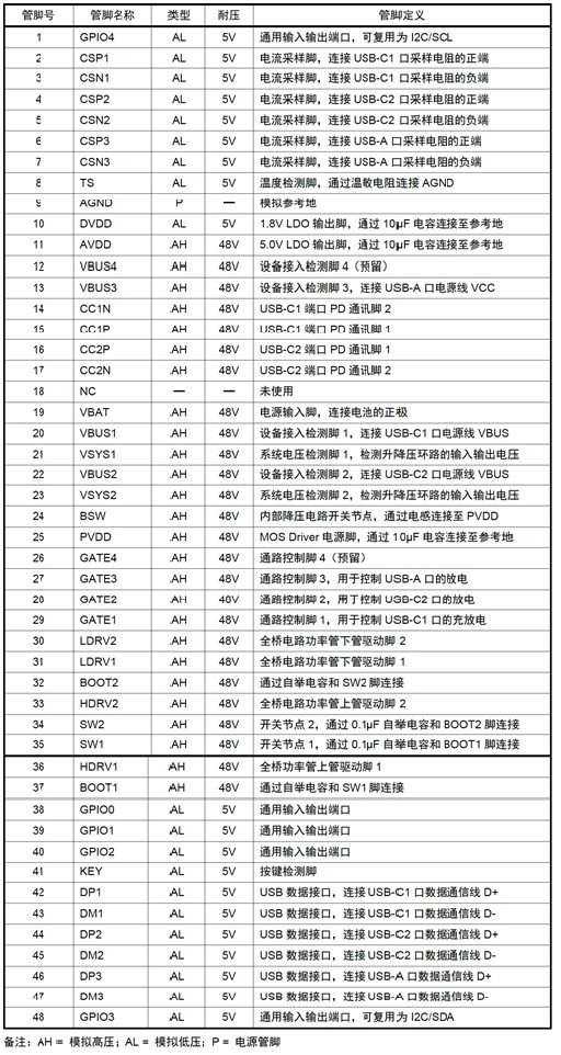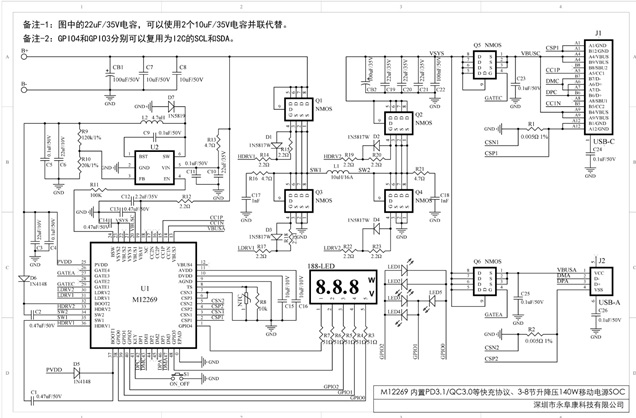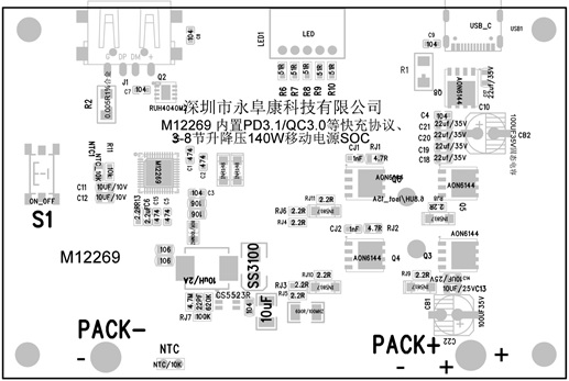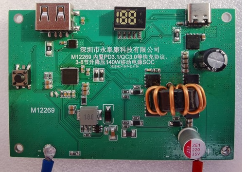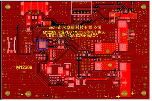 深圳市永阜康科技有限公司現(xiàn)在順勢(shì)推廣一顆支持PD3.1/QC3.0等主流快充協(xié)議、3-8節(jié)升降壓型140W鋰電充放電管理SOC-M12269。 該芯片是一款面向3-8串電芯大功率移動(dòng)電源應(yīng)用的專用SOC,集成了同步升降壓電壓變換器、電池充放電管理模塊、顯示模塊、電量計(jì)算模塊,提供最大140W輸入/輸出功率,支持 PD3.1、QC3.0、AFC、FCP、 SCP、BC1.2 DCP 等主流快充協(xié)議,并提供過(guò)壓/欠壓、過(guò)充/過(guò)放、過(guò)溫等完備的保護(hù)功能。封裝形式采用QFN-48(6.0×6.0mm,0.5mm pitch)。配合簡(jiǎn)單的外圍電路,即可組成大功率單路多口(C+A+A)移動(dòng)電源管理方案。